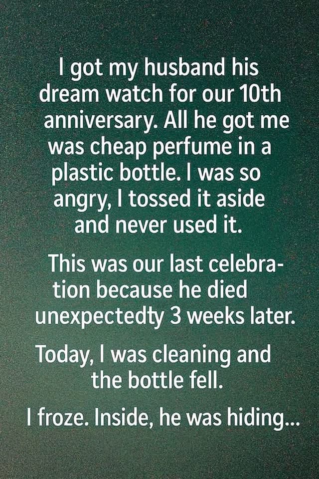 I knelt on the floor, my breath hitching as I recognized the jagged, familiar tilt of his handwriting. The note was dated the morning of our anniversary. It didn’t contain a grand poem or a list of demands; instead, it was a confession. He wrote that he knew the perfume was a humble placeholder. He explained that he had been secretly putting away most of his paycheck for months to surprise me with the down payment on the seaside cottage we had dreamed of since our honeymoon. “This scent is just for now,” he had written. “So you can remember this day while we build our future. You are the only gift I ever truly needed.”