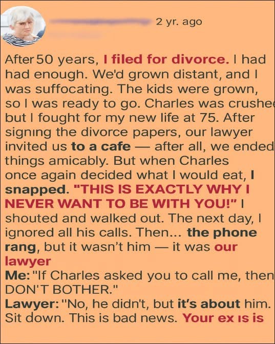 Posted on November 29, 2025 By admin No Comments on After 50 Years of Marriage, I Asked for a Divorce.. FULL STORY