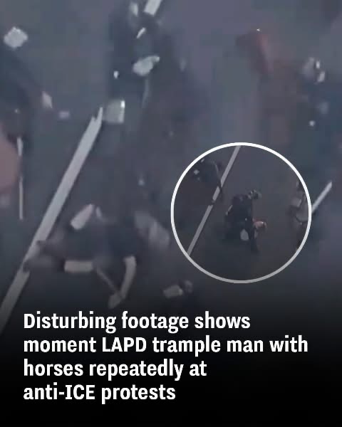 A man is repeatedly tramped on by police horses in a startling video taken during the Trump administration protest over the weekend.