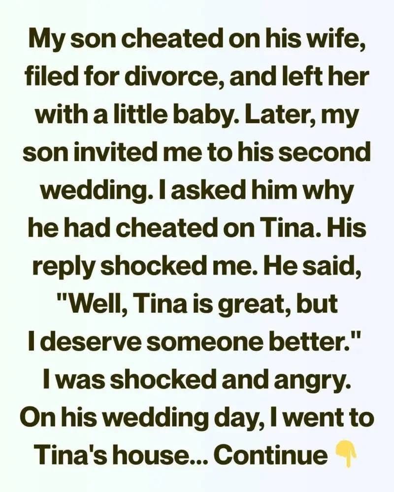 But over time, Tina began quietly mentioning my son’s infidelity. At first, I thought she was joking or confused. Soon, her calm explanations and the evidence she showed made it undeniable—my son had cheated on her more than once. I felt ashamed and heartbroken by what he had done.