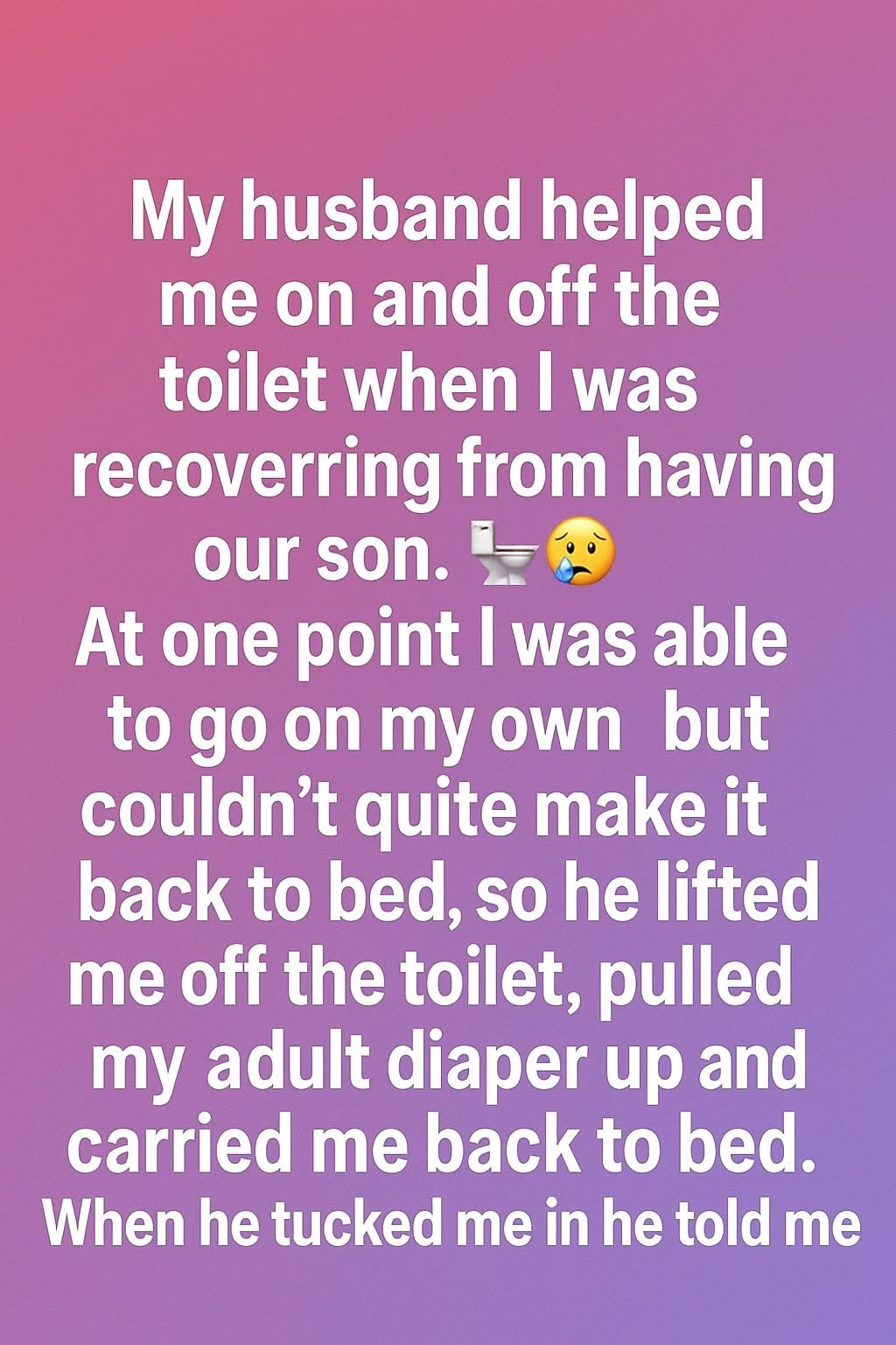At one point I was able to go on my own but couldn’t quite make it back to bed, so he lifted me off the toilet, pulled my adult diaper up, and carried me back to bed. When he tucked me in he told me… That this moment was one of the reasons he loved me even more. I was embarrassed, fragile, and exhausted from childbirth, but he looked at me like I was the strongest person he knew.