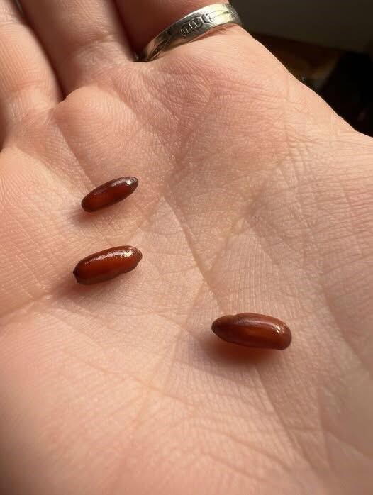 Other explanations—like seeds, insect eggs, or droppings—are far less likely. Seeds tend to be harder and irregular. Insect eggs are usually pale, clustered, or textured—not smooth and glossy. Droppings are crumbly or uneven. The uniform, polished look strongly rules those out.