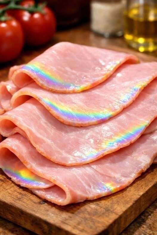 Many people notice it the moment they open a pack of deli ham: a glossy, rainbow-like shimmer spreading across the slices. The shifting greens, purples, and blues can look metallic and unsettling, triggering worries about chemicals, bacteria, or spoilage. While some shrug it off as normal, others hesitate, unsure whether the meat is safe to eat. The truth sits between alarm and indifference, and understanding it requires looking beyond color alone.