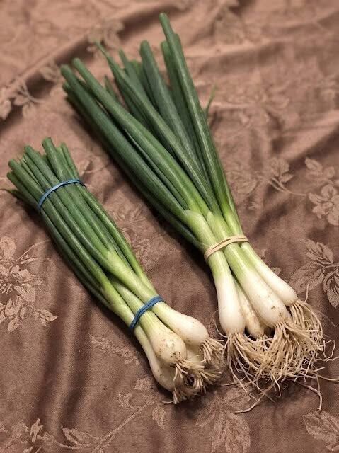 Green onions and scallions are actually the same thing. They are young onions harvested before a bulb forms, so they have a slim white base and long hollow green stalks. Their flavor is mild, fresh, and slightly sweet. Both the white and green parts can be eaten—the white is stronger, while the green is softer and more delicate. They are great raw in salads and salsas, or lightly cooked in soups, eggs, noodles, and stir-fries.