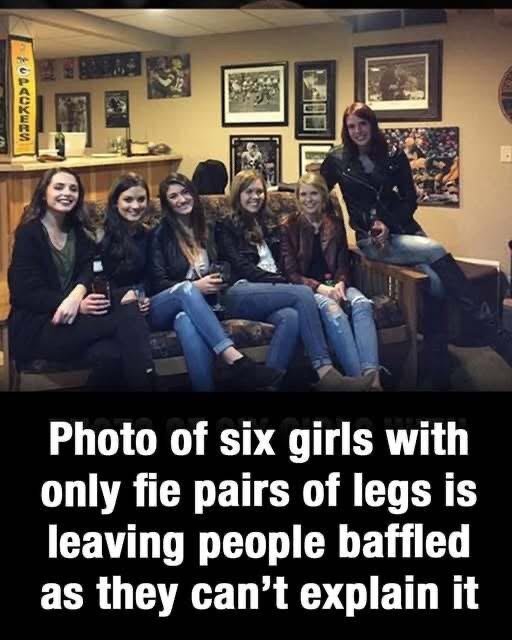 The most common explanation is surprisingly simple: the second girl from the left has her legs positioned in a way that blends almost perfectly with the person next to her. Her legs are partially hidden and visually merge with another pair, making them seem invisible at first glance.