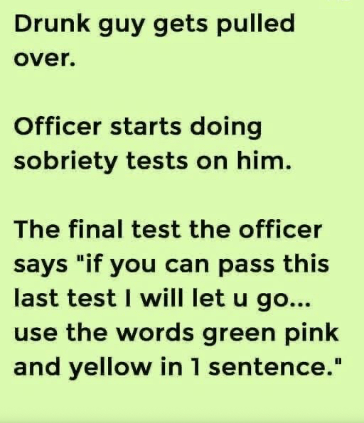 As part of the assessment, the officer asked the driver to create a simple sentence using three colors. It may have sounded harmless, even playful, but such exercises are designed to check mental clarity and focus. The driver responded with what he believed was a clever line: “The phone went green green, I pink it up, and the light turned yellow.” He delivered it proudly, as though humor might smooth over the situation. Instead, the unusual phrasing reinforced the officer’s concern that the driver’s cognitive abilities were impaired. What seemed like a joke became a reminder of how subtle signs can reveal deeper risks.