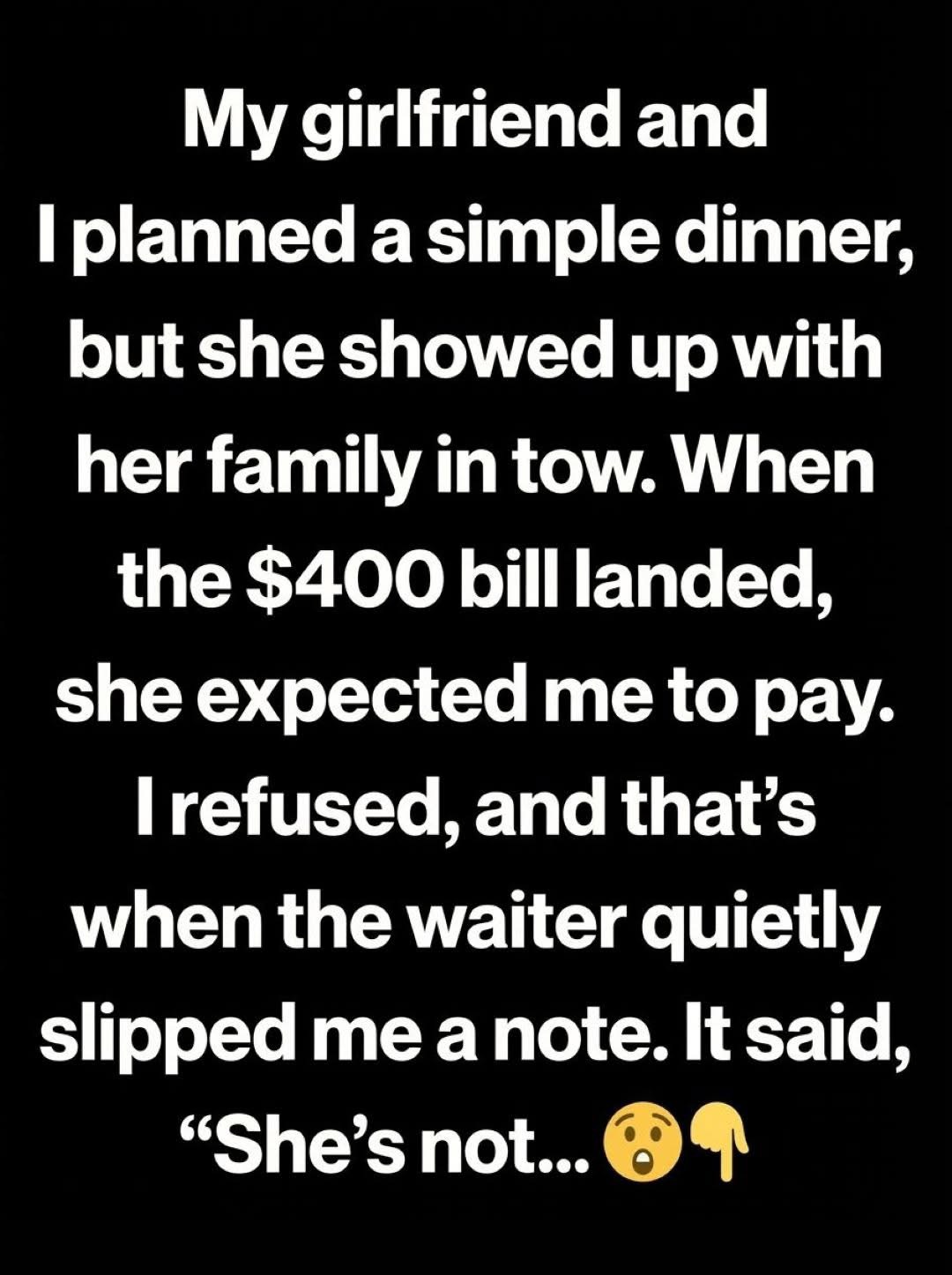 As dinner progressed, the atmosphere became lively and loud. Plates kept arriving, drinks were reordered, and conversation flowed easily among everyone at the table. It felt less like the intimate evening I had envisioned and more like a group celebration. I participated, smiled, and listened, but I couldn’t ignore that no one mentioned plans or expectations. When the bill arrived and was placed in front of me, the total was far higher than I anticipated. My girlfriend glanced at it and casually asked if I could take care of it, as though it had already been agreed upon.