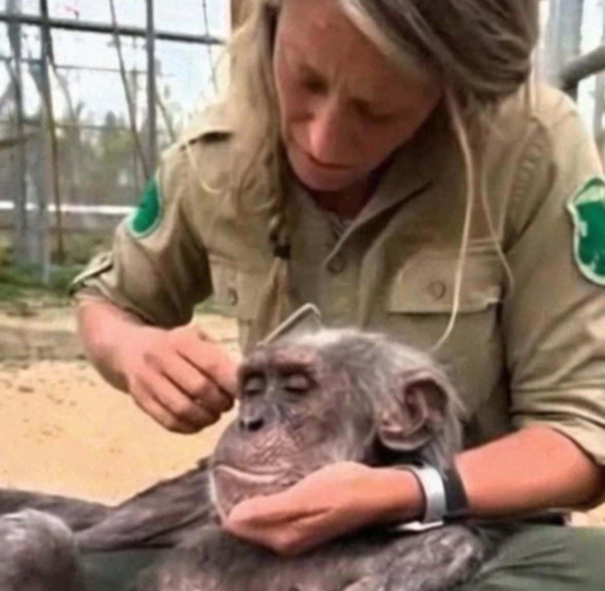 Anna couldn’t bear it. She couldn’t let him die thinking he was alone in a cage again. She grabbed a soft comb—an interaction he’d always loved—and did something she wasn’t supposed to do. She entered the enclosure and sat on the ground, pulling his frail, thin body into her lap.