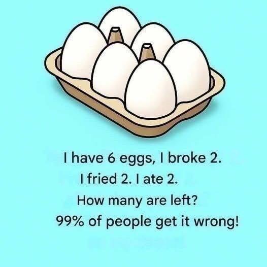 So the correct logic is simple: you start with 6 eggs, and only 2 were used to make the meal. The other 4 eggs were never touched and are still sitting in the carton. This riddle is a perfect reminder to slow down, read carefully, and avoid rushing to the obvious answer. Final answer: 4 eggs are left.