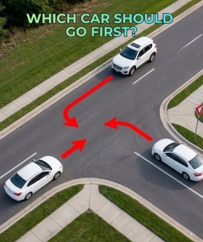 The image shows a simple yet deceptive scenario: three vehicles approaching an intersection without traffic lights. At first glance, it appears straightforward, but closer inspection reveals a complex situation that challenges perception and decision-making. Without clear signals, drivers must rely on rules, judgment, and awareness. This is what makes such scenarios interesting—they highlight how interpretation can vary even when the rules are known.